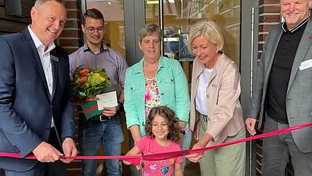 Rund zwölf Monate hat es vom ersten Spatenstich bis zur Aufnahme der Krippen- und Kindergartenkinder gedauert. Pünktlich zum Start des Kindergartenjahres 2022 konnten nun die ersten Mädchen und Jungen in das „Hössennest“ einziehen. Karin Harms, Landrätin des Landkreises Ammerland, Michael Rösner, Bürgermeister der Stadt Westerstede und Axel Weber, Hauptgeschäftsführer der Ammerland-Klinik, haben die schmucken Räumlichkeiten nun in einem kleinen feierlichen Rahmen übergeben.